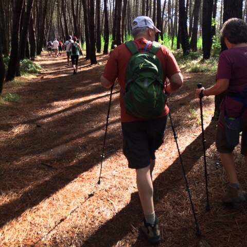 Our hike today was in the vicinity of the Sant Agata Dei Due Golfi where we had great views of both the Gulf of Naples and the Gulf of Salerno. We did the 7K, easy to moderate walk,with a steep descent from Malacoccola and climbed the equivalent of 52 floors, based on Ross’ GPS. Most of that climbing was done on rocky steps, some civilized and some “uncivilized.” We quickly learned to appreciate the value of using two hiking poles instead of just one.
