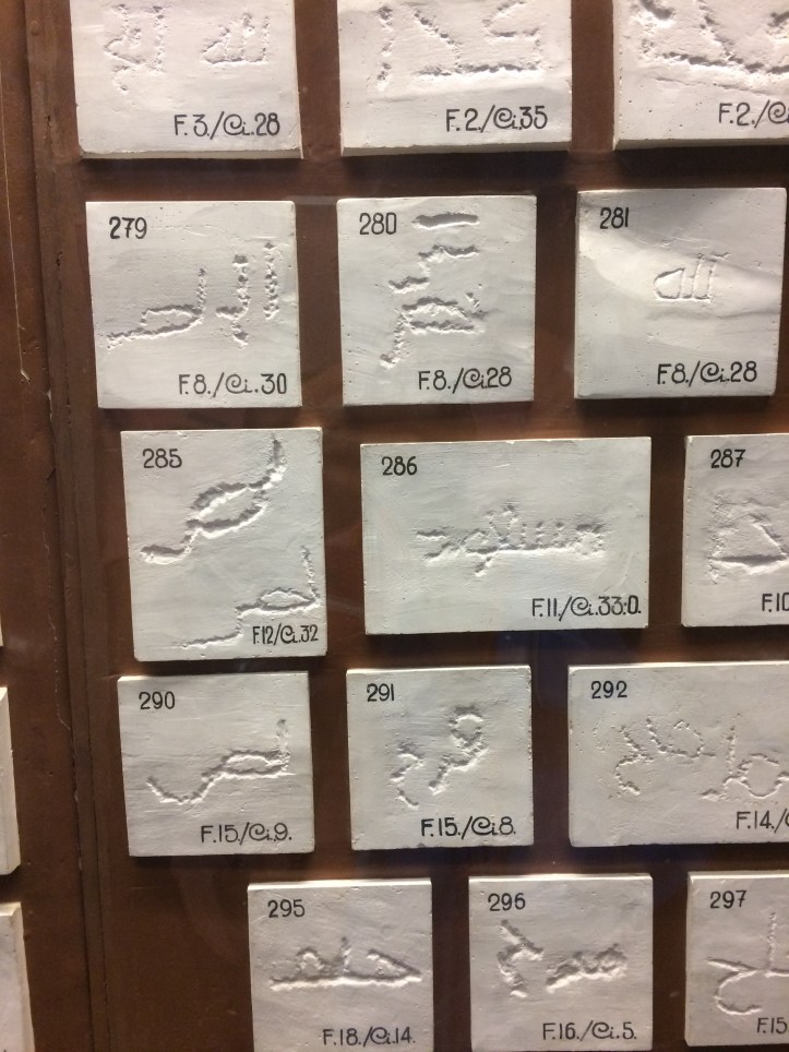 This exhibit on the wall showed the distinctive marks or tacherons used by stone masons to identify their work.