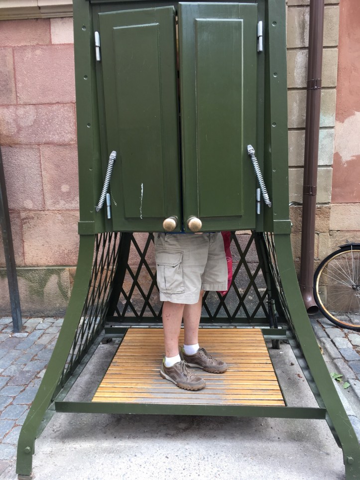 Another location to find on the Rick Steves’ tour was a phone booth that bears his name. Sort of. Rikstelefon is printed on the side of the booth. No phone there anymore though. Those look like Ross’ legs!