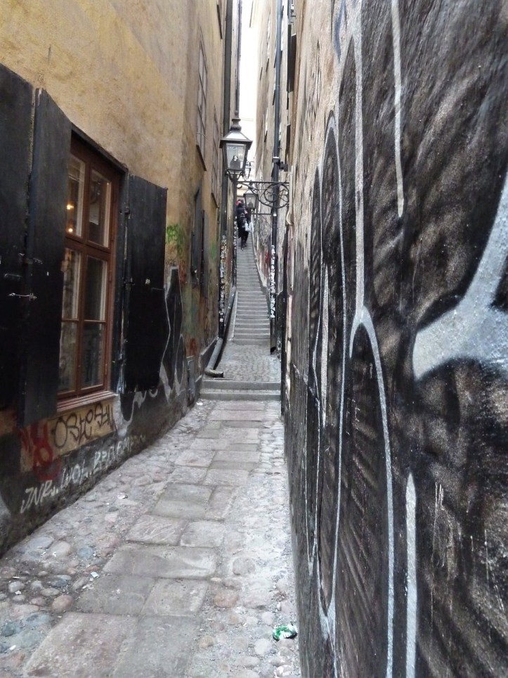 I did search for The Girl with the Dragon Tattoo but to no avail. Ross thinks we crossed a few streets on our walking tour, however, that were mentioned in the book. Finally we walk through the gate leaving Gamla Stan.