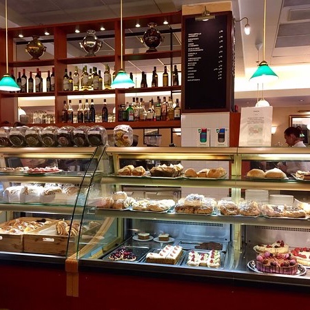 Today, the outdoor seating was full so we went inside and were greeted with this vision. No pastries for lunch though – we saved that for later.