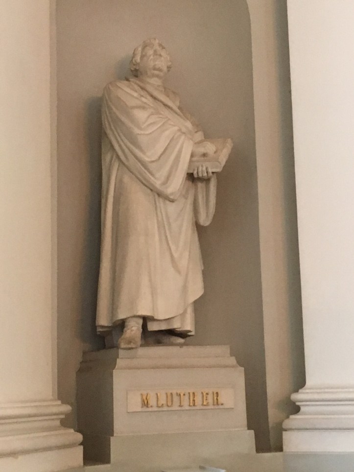 A Lutheran Church, it had a statue of Martin Luthor.