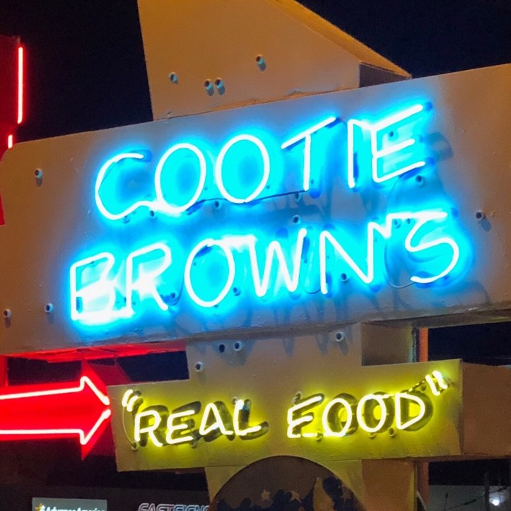 We finish off this day by checking into our hotel – reservations are made a year in advance – then regrouping and heading off to dinner. We eat at Cootie Brown’s in nearby Johnson City and have nice enough weather to dine outdoors.