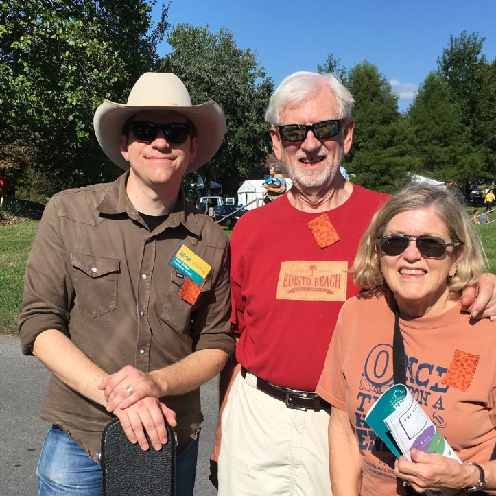 A new teller we liked was Andy Hedges from Texas. He is a cowboy poet who recited poetry and sang cowboy songs. We caught him outside the tent with Al and Brenda.
