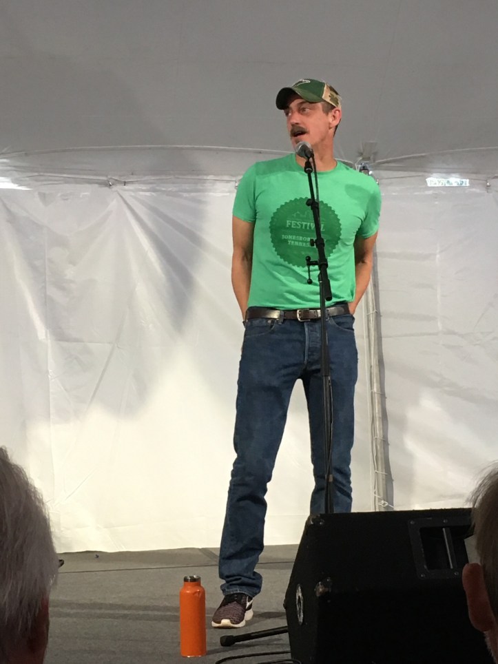 Many of the tellers have an Appalachian background. One of the first tellers in the Courthouse Tent was Donald Davis, Ross’ favorite. Davis’ stories are frequently about growing up in a small town with his parents and a little brother that “he didn’t need.” His ever present bow tie and seersucker suits make him stand out among tellers. The stories are always best if you can hear them in person and see the teller’s body language.