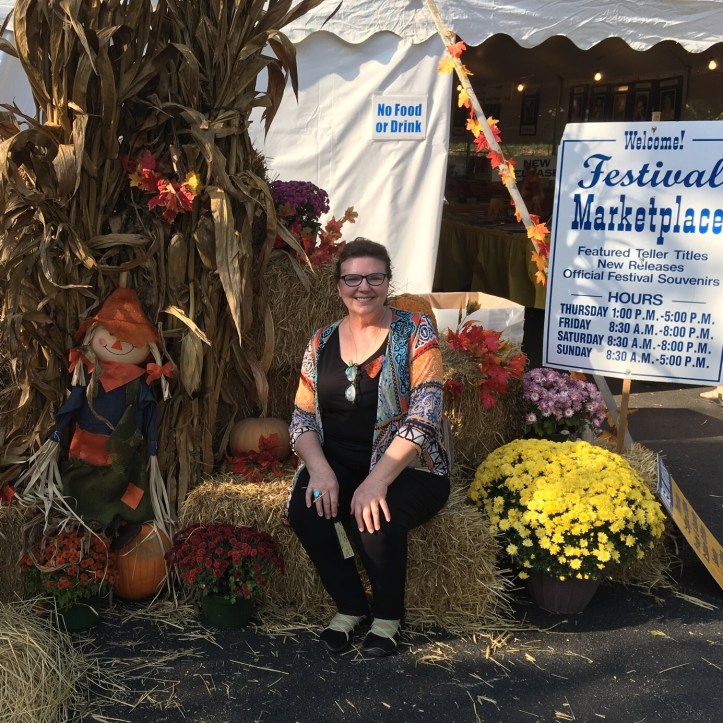 We saw other storytellers and singers over the weekend. It’s an immersion of different ethnic stories and music but there are other things to try and squeeze in. One important stop is the Festival Marketplace. Sally outside the resource tent.