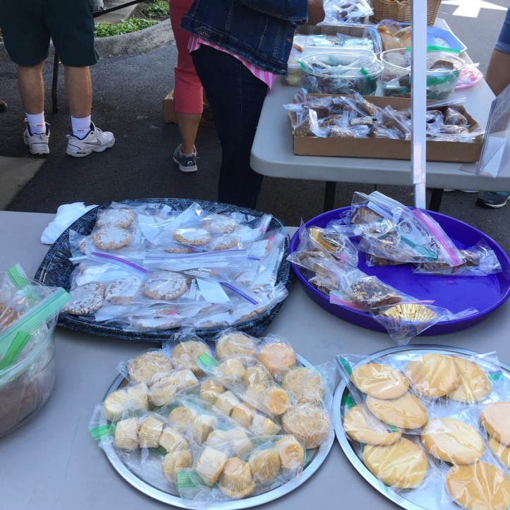 During the 30-minute breaks between tellers you can hurry off to find a snack or drink while someone saves your seat, then rush back to the tent to return the favor. A favorite treat stop was this stand behind the local library. Homemade goodies.