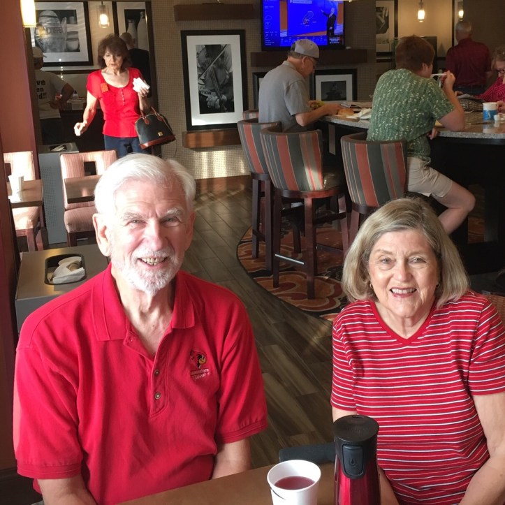 Ready to get to the festival Friday morning, Al and Brenda eat breakfast at the hotel.