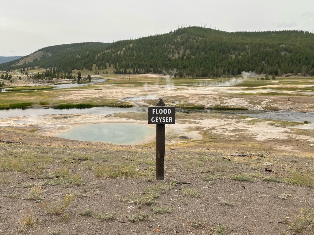 We leave here and make a stop to eat lunch at a pullout just south of Grand Prismatic which overlooked the Flood Geyser.