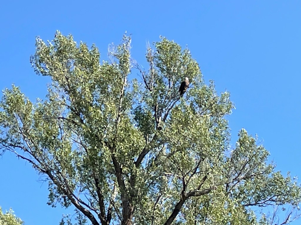 We see bunches of eagles all along the shoreline and a few other birds, but no four-legged animals.