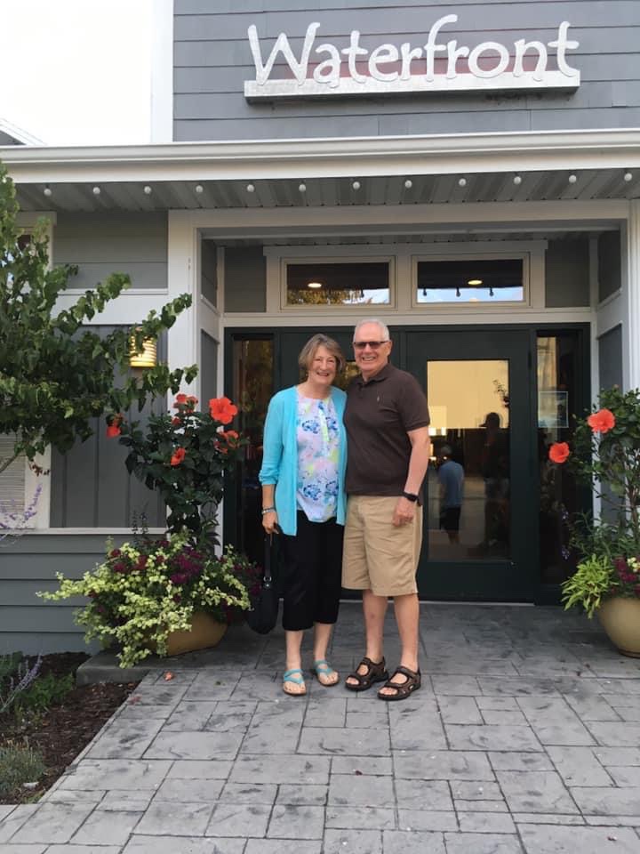 We love the food at the Waterfront. Tonight I had their wedge salad and small plate of shrimp and grits. Wonderful. Ross had the shrimp and grits also but with lobster bisque. The photo below is us leaving the Waterfront almost exactly to the day, two years ago before Covid. Probably had shrimp and grits that night too.