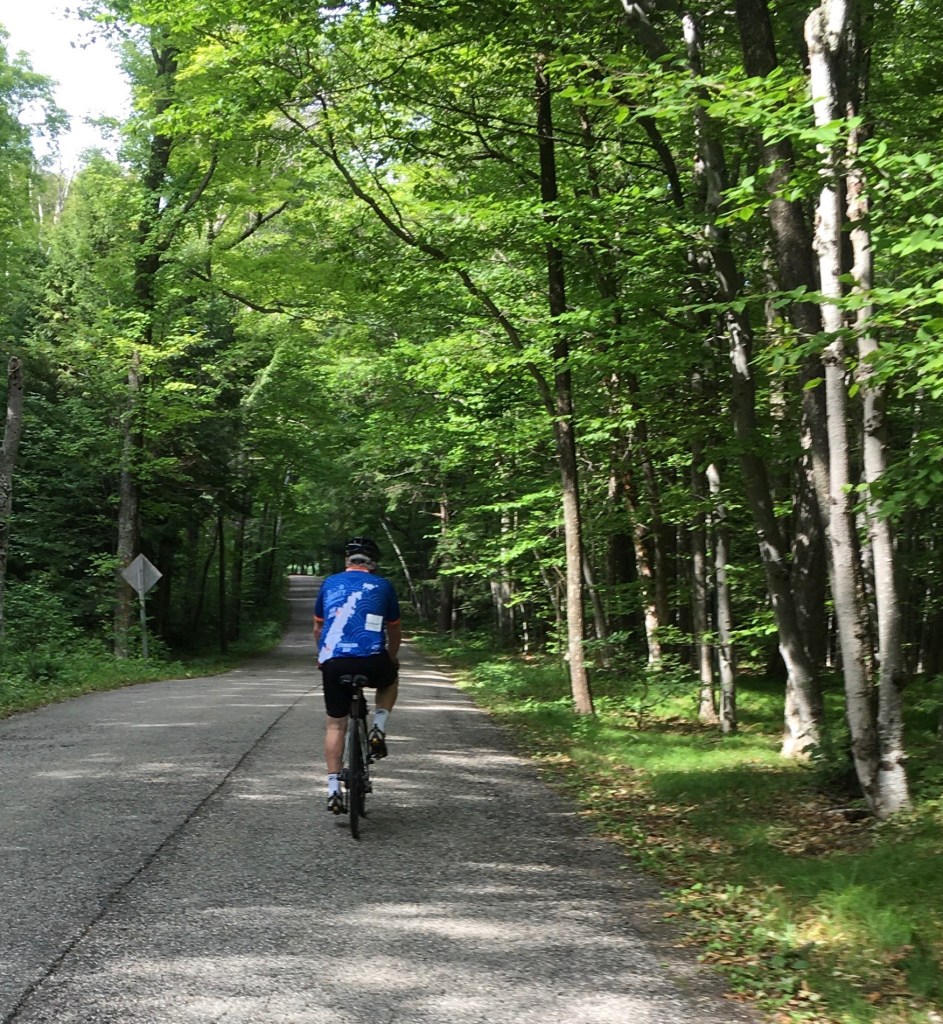 We continued on Highland Road and soon arrived at the dreaded hill du jour that we saw yesterday. Ross called it “the little fierce one.” He made it up but in granny gear and I had to stop about halfway to catch my breath and then continue up. But, the downhill section after this hill makes it worth the effort. We soon hooked back up with County Route F and arrived back in Bailey’s Harbor.