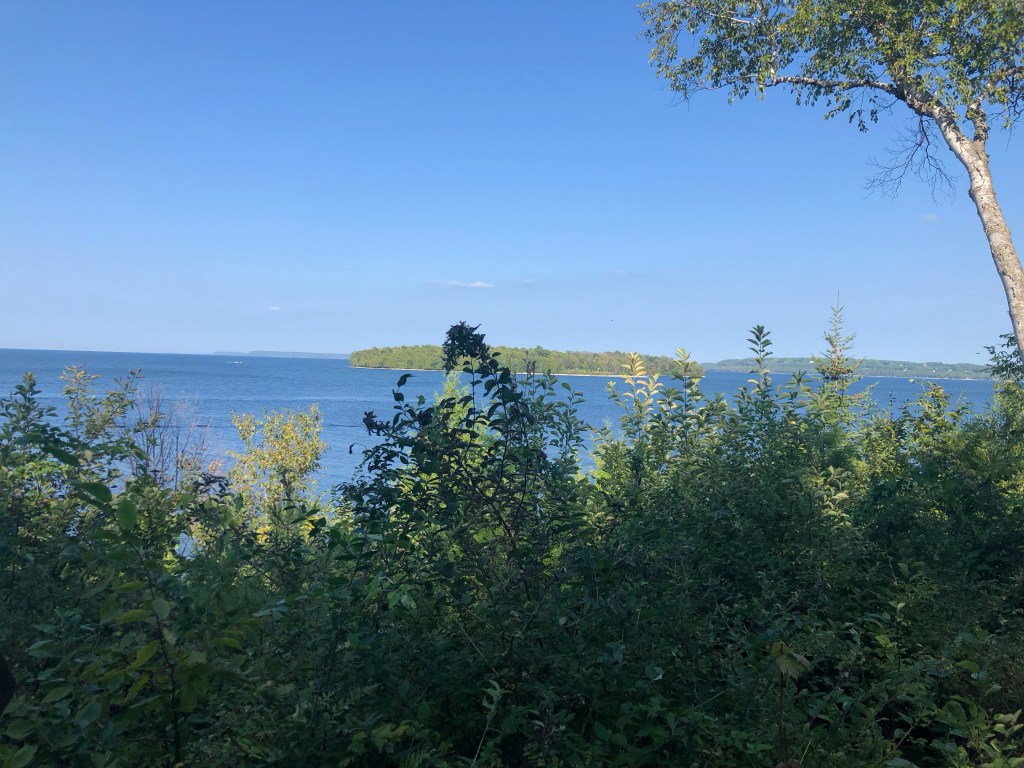 After a 15-minute rest, we headed back to Bailey’s Harbor the same way as yesterday, taking County Road A out of the park to the other Highland Road, then back to County Road F and into town.