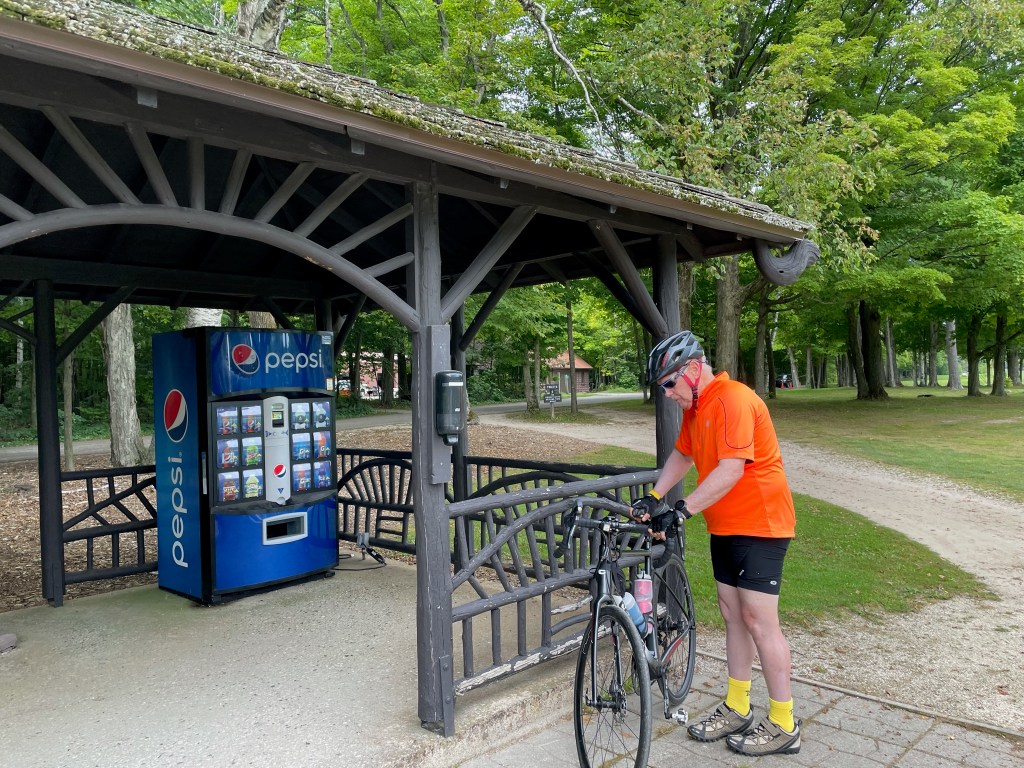 We continued on to the golf course and our favorite soda machine. I will complain again about the road in Peninsula State Park. We only rode about a mile on it today but it is not good. So much better to ride on county roads around the area.