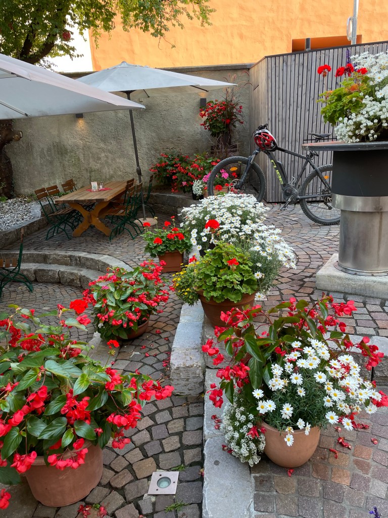 After our flight, a shuttle picked us up at the airport and we arrived at our Innsbruck hotel around noon, too early for check-in. Our body clocks were off and we wanted to do nothing but sleep but we met up with our bicycling friends from around the U.S. – there are seven of us – who had all arrived at approximately the same time and started exploring.