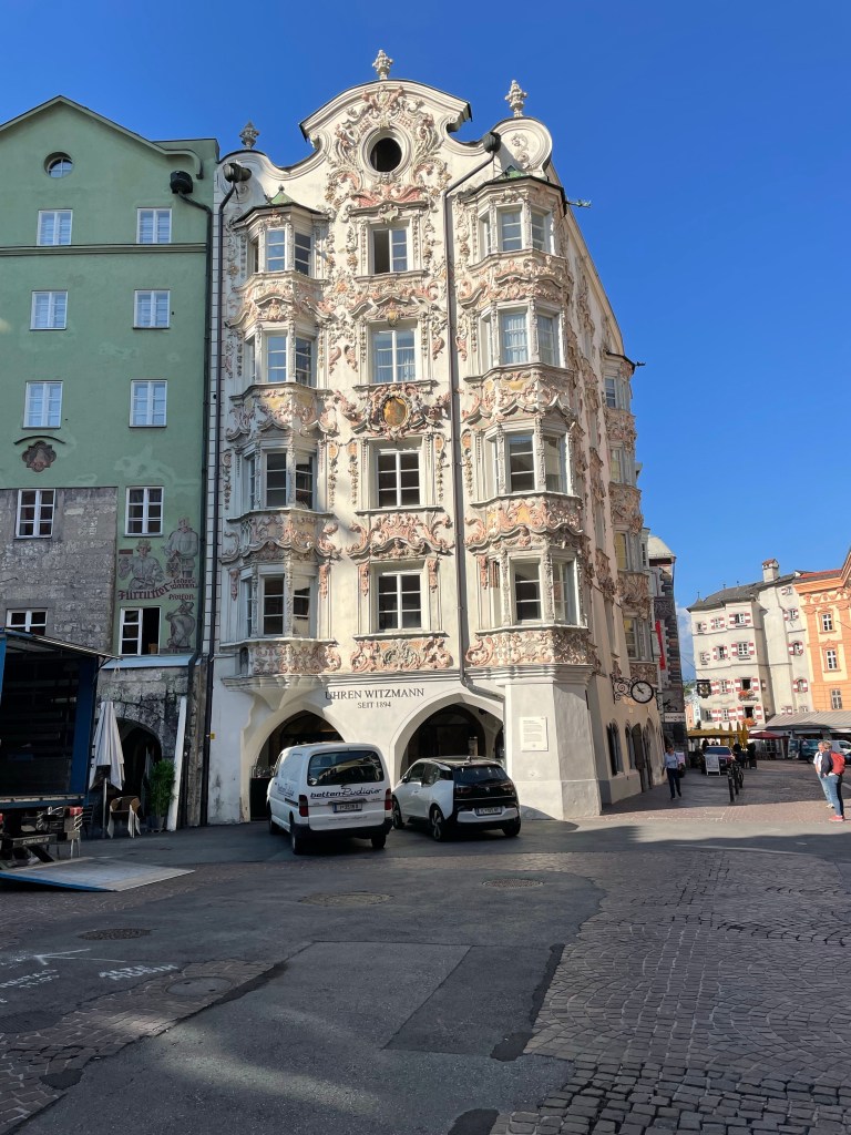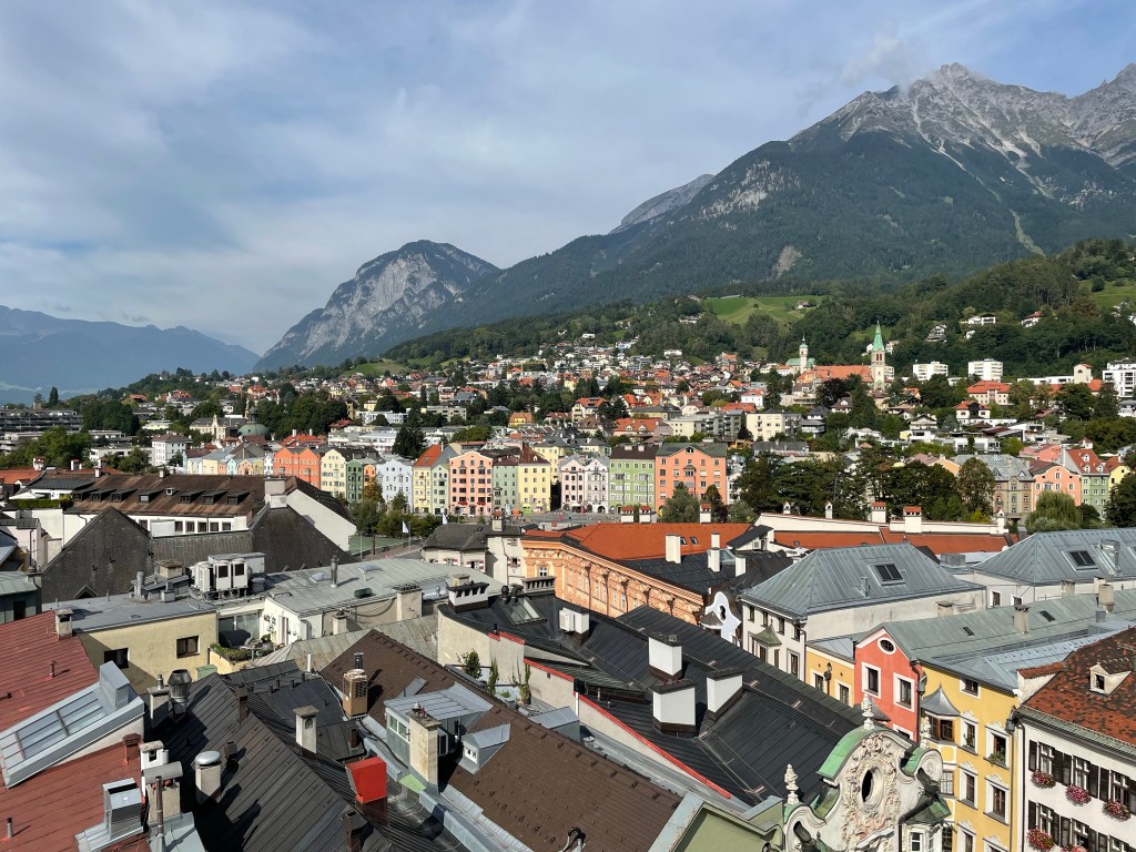 We arrived in Innsbruck as part of an extended pre-trip to a VBT (Vermont Bicycle Tours) bicycle vacation in the Dolomites in Italy. We had been here before but it was years ago and we had basically no memory of the city or where we stayed. It was one of those, “If it’s Tuesday, this must be Belgium,” trips.