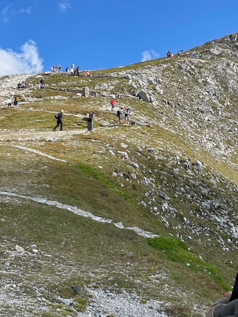 After the cable car dropped us off, the rest of the trip to the top was by foot. I didn’t make this part of the trip as I was feeling dizzy and just wiped out. Decided it was dehydration from the flight over. So I really started pushing the liquids. Ross and Tom are located in the middle of the photo below, probably checking out their GPS.