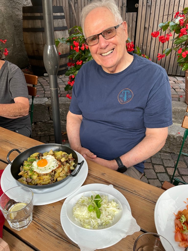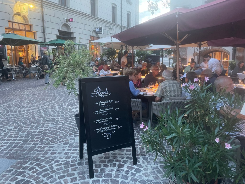 Dinner our final night in Innsbruck was at Ottoburg, another outdoor cafe with wonderful Tyrollean food. It was even more special because of the jazz duet playing just down the street.