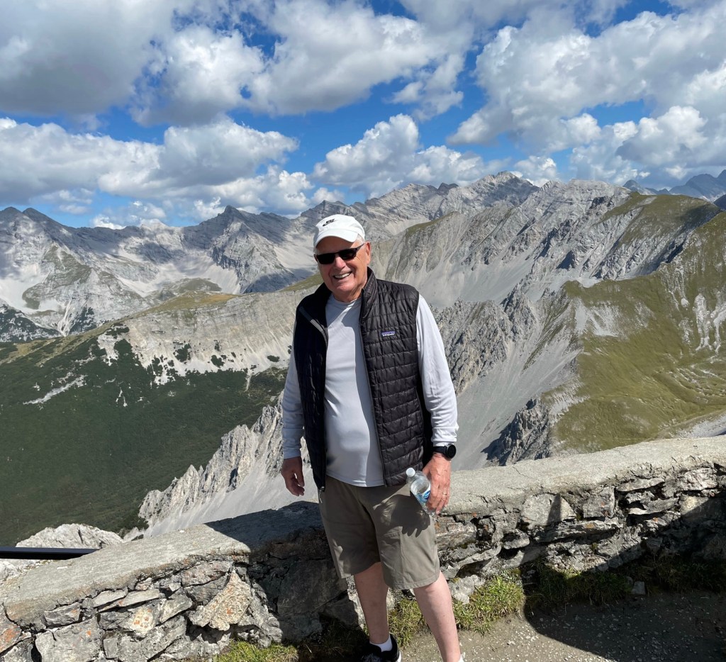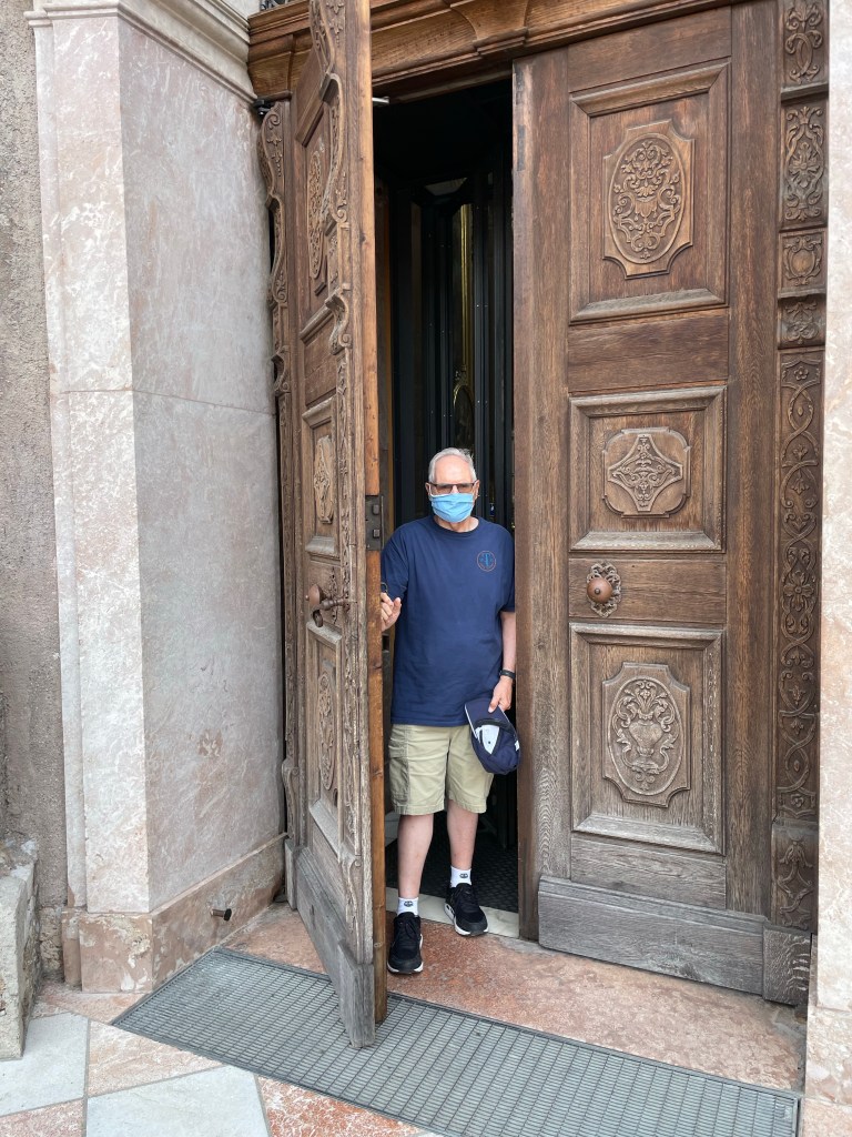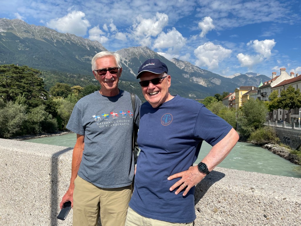 Innsbruck’s population is more than 100,000 people and it’s in a valley surrounded by the Alps with access to the Brenner Pass. This location makes it very popular for skiing; Innsbruck has hosted two winter Olympics in 1964 and in 1976. To get here, we had to travel for 20 hours with two layovers all while wearing a face mask. The layovers were lengthier than would be normal due to a reduced number of available flights. All this is attributable to Covid. It was our first trip overseas in two years and we almost forgot how to pack for such a trip.
