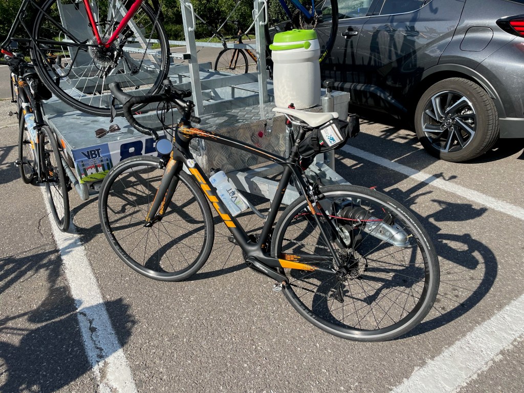 Our route directions are now all available on our phones. We downloaded them to Ride with GPS before we left home. This made finding our way so much easier than the written directions we used in past years although I do miss the camaraderie that ensued when we would gather on the road to try and interpret some particularly intricate set of directions. And we would also have to stop to turn the page. For this trip, I just taped my AirPod in my ear – taking no chances on it falling out on a downhill ride – and took off.