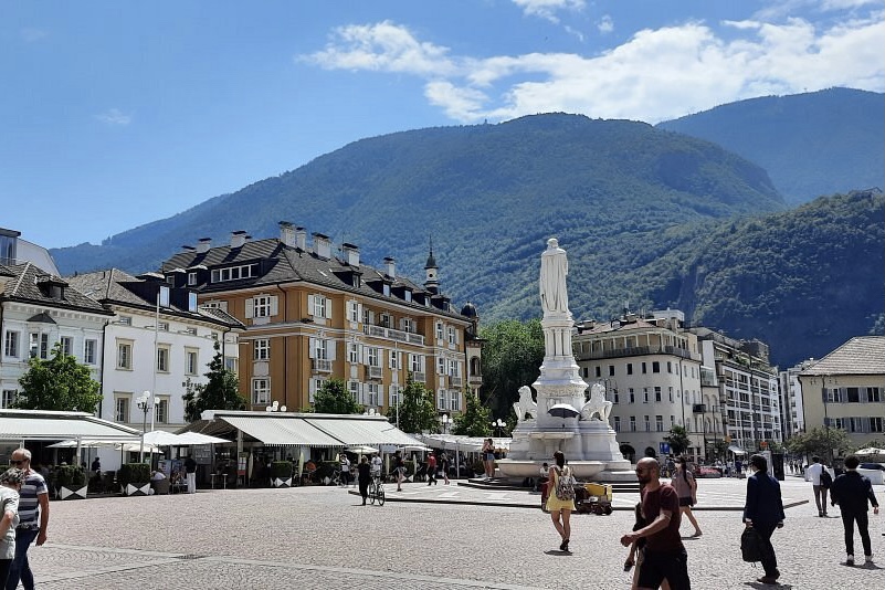 The next morning we met our bus driver at 10 am and he drove us into Italy. We went through the Brenner Pass and in less than two hours, arrived in Bolzano. This Italian city also has a population of just more than 100,000 and is the capital of the province of South Tyrol. Bolzano is also known as Bozen, its German name. Prior to World War I this part of Italy was controlled by Austria. A large percentage – 60 percent – of the population in Bolzano speak German as their primary language.