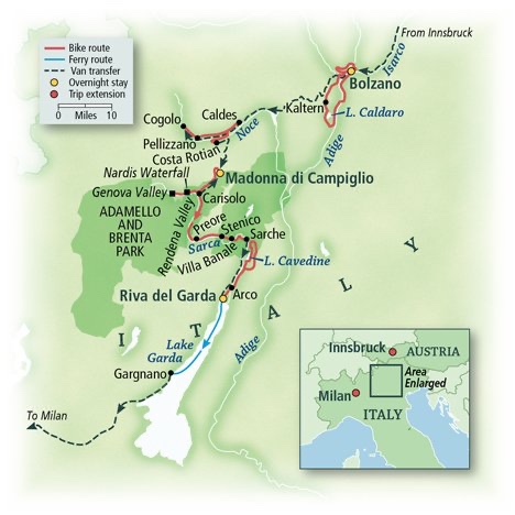 A little further out of town, we reached the medieval Runkelstein Castle up on the hill. At this point we crossed the river, turned around, and headed back the way we came.