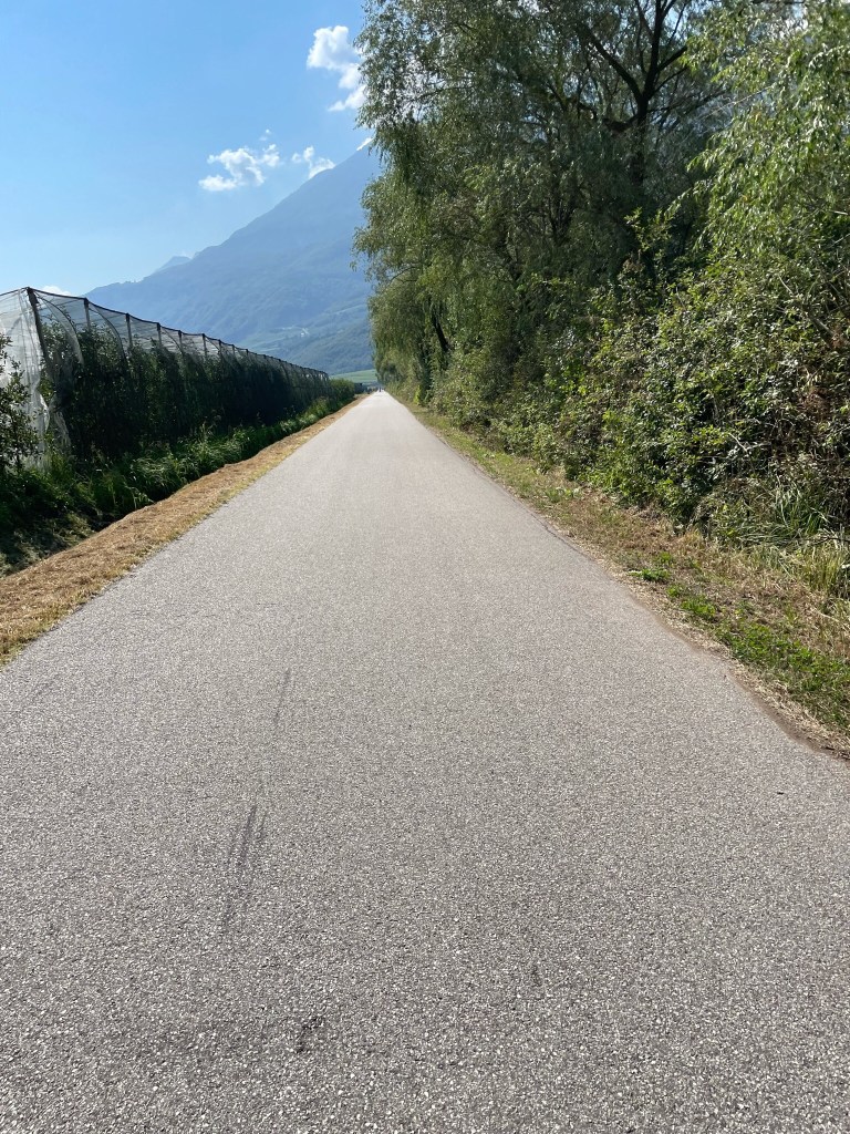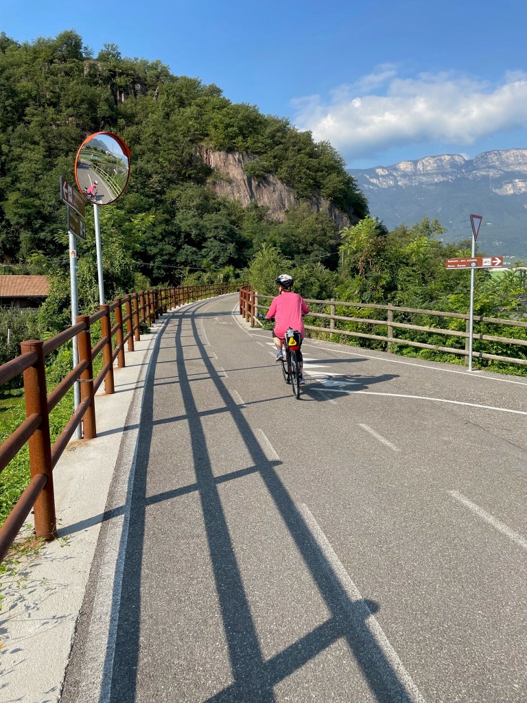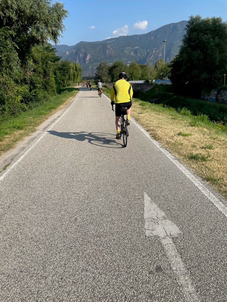 Today will be remembered by the long uphill. I estimated at least six miles. We started from the hotel repeating our departure yesterday through the piazza to the bike path along the Isarco River. Then the bike path started to open up with less traffic.