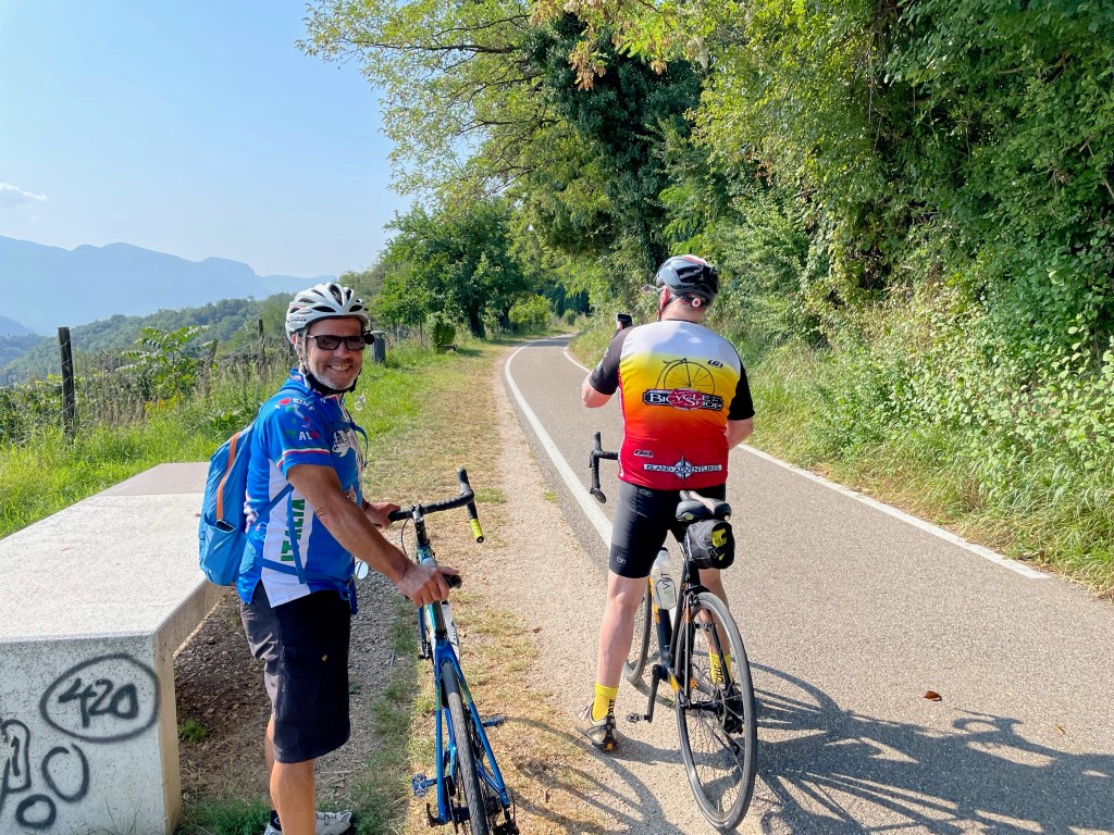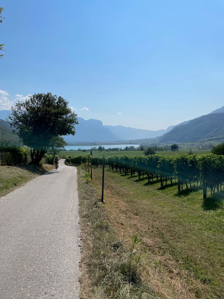 Then we started with a gentle uphill near the confluence of the Adige and Isarco Rivers. This was the start of a long ride up that culminated after ten miles at a winery.