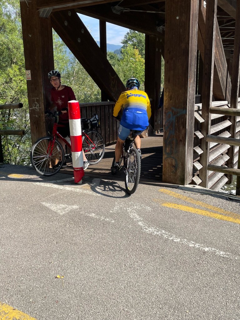Eventually the road leveled out and we turned onto a bike path and crossed a small bridge over the Sarca River.