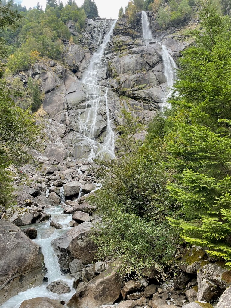 The waterfalls descend about 430 feet and are sourced by the Presanella Glacier. Since this was Saturday, there were lots of people hiking and visiting this area.