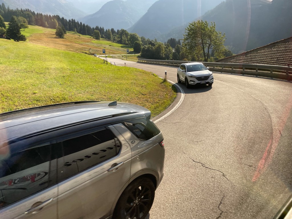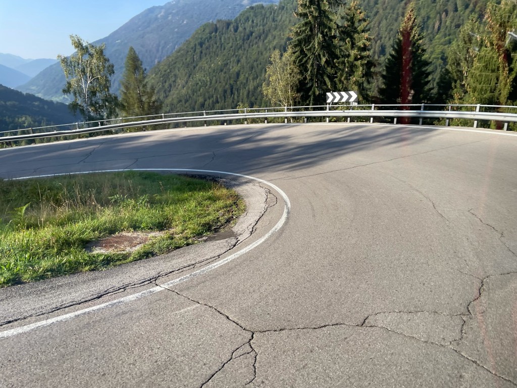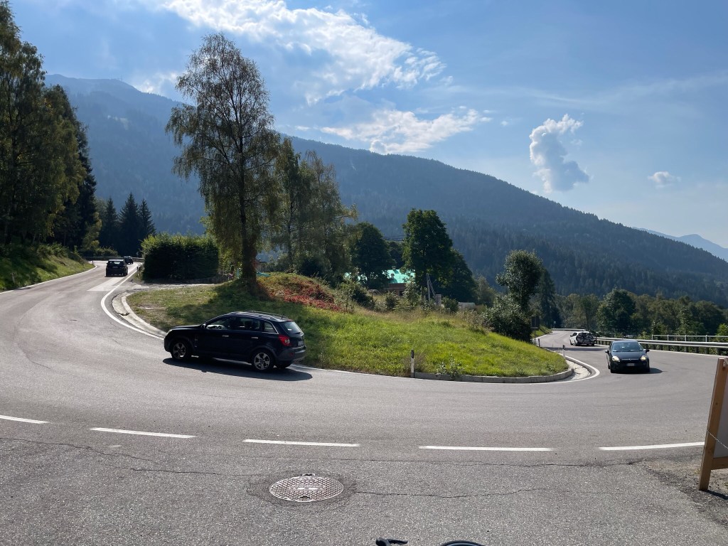 Then we began what was a six-mile descent into the Rendena Valley. And it was awesome. We had almost constant traffic though including tons of motorcycles some of which were going down as well as coming up and lots of hairpin turns although they were gentle. But you just couldn’t worry about the traffic; you needed to hold your own line and trust they went around you.