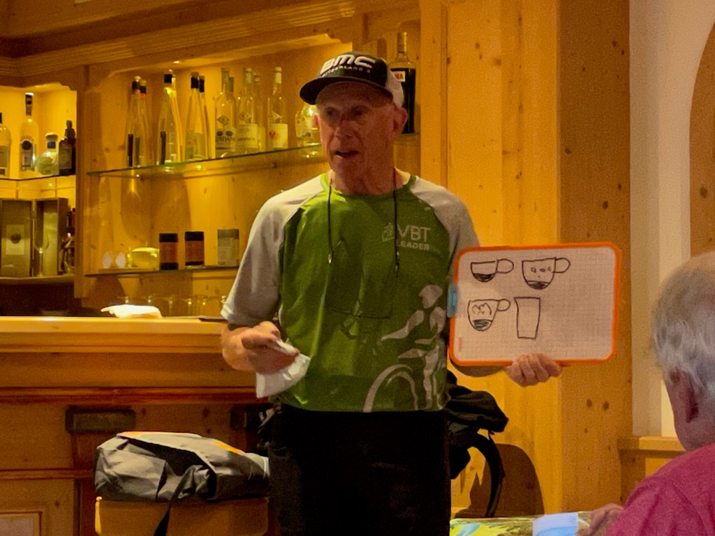 We had lots of great days on this trip but the most exciting ride of the trip was today! Not the best, necessarily, but the most fun. Our morning started with our route review and a language lesson. First we learned that there are about four different words in Italian that mean good but they differ based on what you are describing, i.e., a feeling, a thing, etc. Then we learned about all the different types of coffee and which is proper to have at specific times during the day.