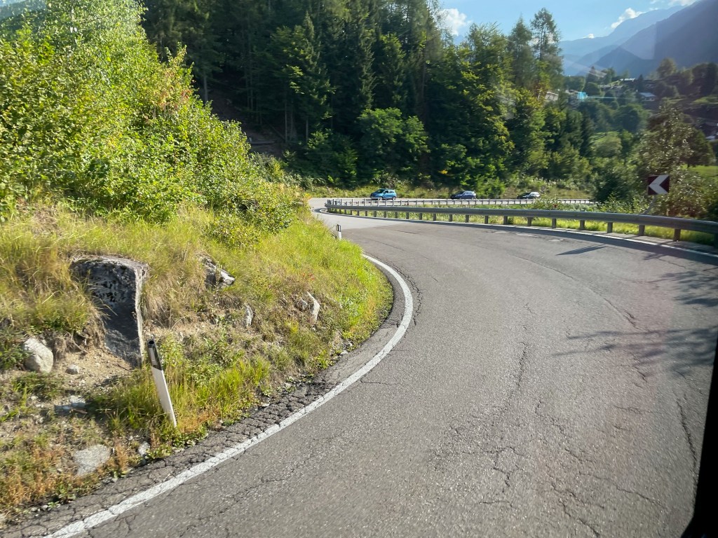 You really did not want to stop and lose momentum, the feeling of being a kid again, and flying down the mountainside. This may be the closest we could come to feeling like being in the Tour de France. This is a photo from a bus trip down the next day.