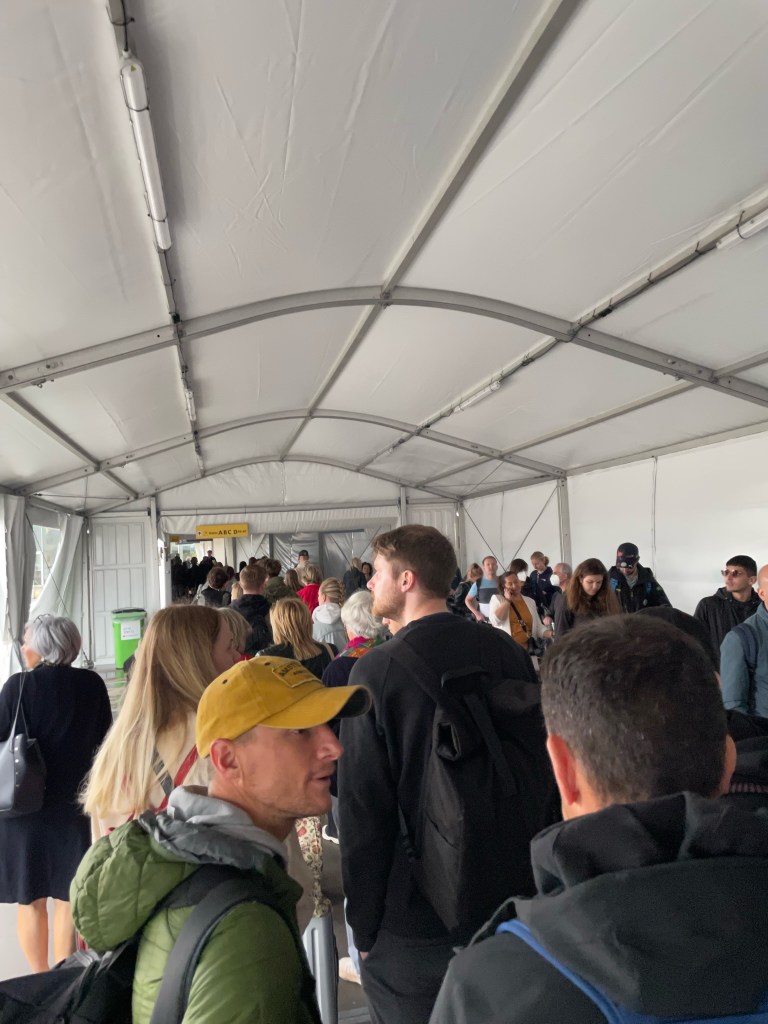 The next morning we leave the hotel well in advance of our flight and the length of the ticketing and security lines at Schiphol were unbelievable. In fact, the security line was so long, it meandered through a series of tents that went outside the airport. Once again, however, our business class ticket allowed us to gain access to somewhat shorter lines on occasion as well as grab breakfast in the lounge.