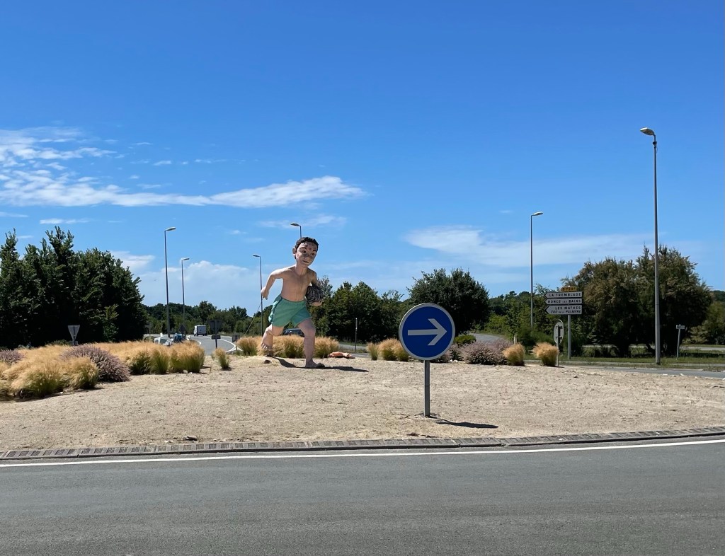As a sign that we are in the oyster area of France, the center of this roundabout contains a statue called the oyster boy.