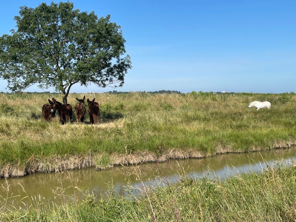 Done with the transporter, we continue with our ride and travel along country roads, canals, and villages. We stop for a donkey sighting.