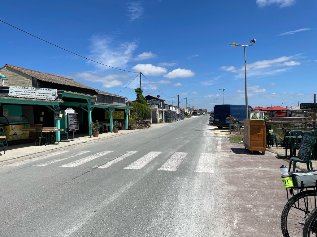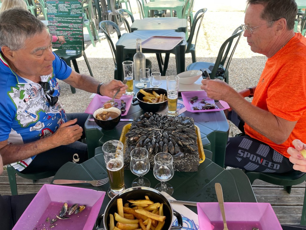 After a 21-mile ride we reached our lunch stop in La Tremblade. This photo is along a canal and almost all the buildings are restaurants where we could get very fresh seafood. Tourism is a major economic source for the town, thus all the restaurants. Plus, La Tremblade is located in the heart of the oyster basin along the coast.