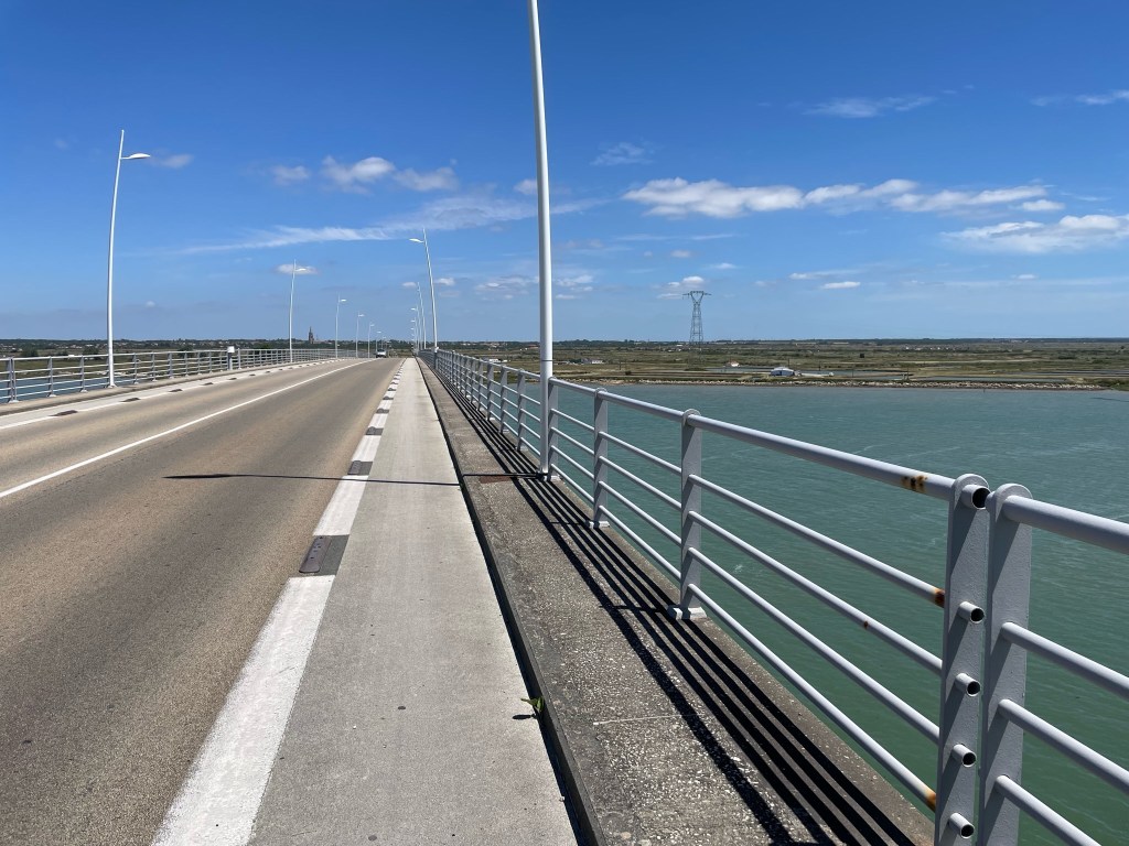After lunch the next section of our ride is an 11-mile stretch to Brouage. This includes riding across the bridge over the Seudre River. I stopped at the top in the bike lane for a photo.