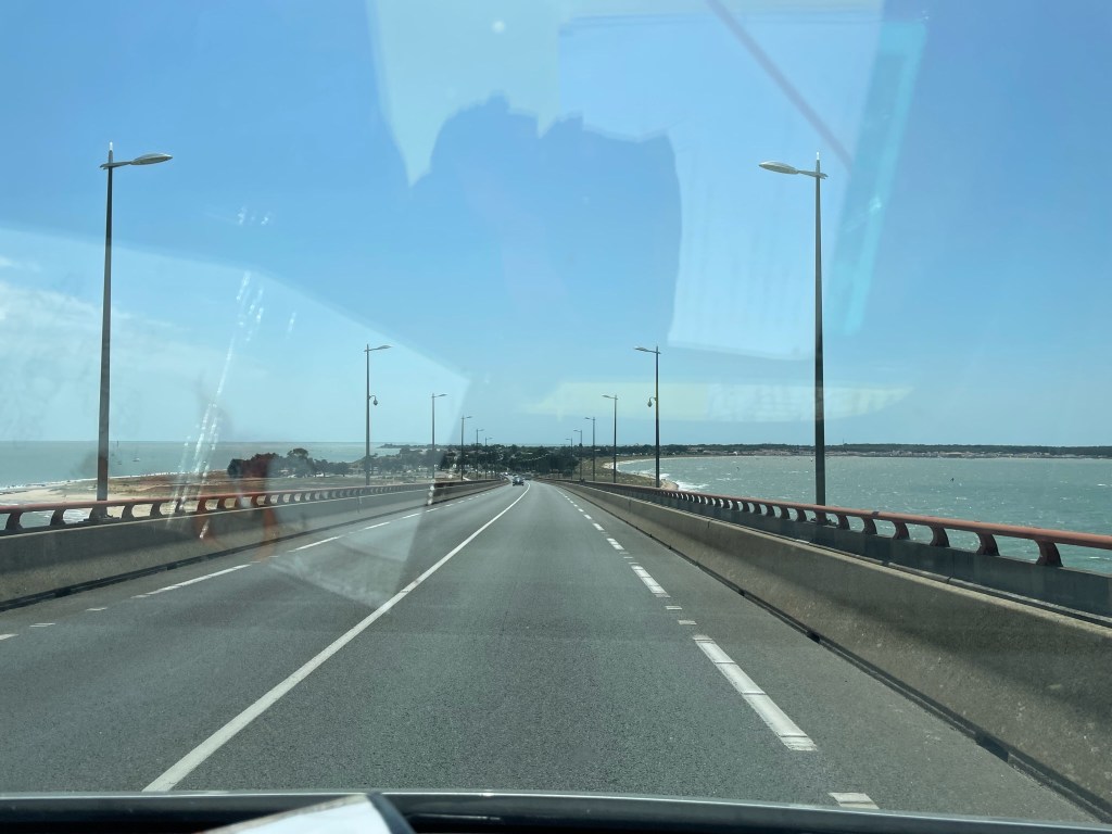 Crossing the bridge to Île de Ré. The bridge was built in 1987 – previously ferries were in use – and is 1.8 miles long.
