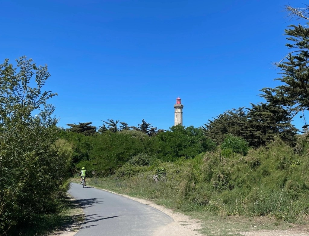 Looking ahead we see the Phare des Baleines Lighthouse, the highest point on the island.