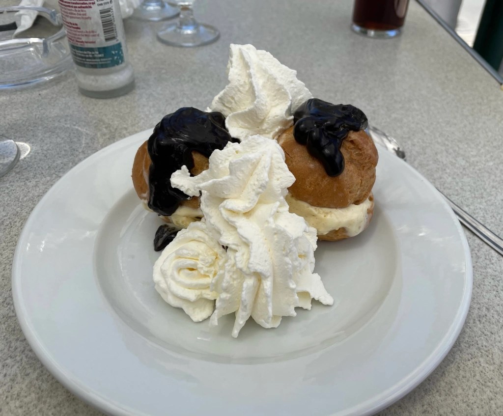 Dinner is on our own and we walk a short distance to the harbor to find a place to eat. In this photo, the tide is probably moving out but the boats are still floating. When it’s truly out, they are aground. The island has a year round population of slightly less than 18,000 but that number increases to 220,000 residents during the summer.