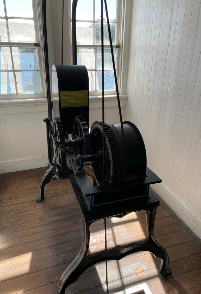 Lighthouse keepers really dreaded the fog. Whenever visibility was less than five miles, they needed to ring the bell. This machine below did it for them, but it had to be wound up first. Then it lasted for two hours and had to be cranked again. Tough duty when fog would settle in for a couple of days.