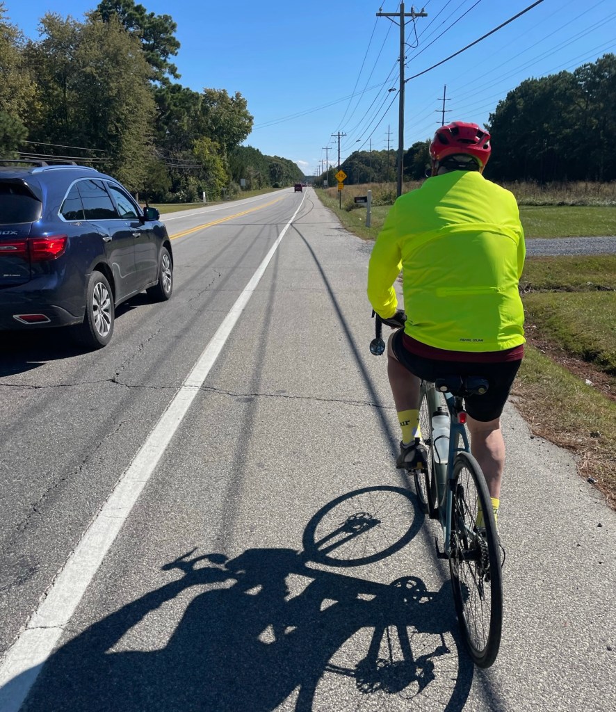 Then we were on St. Michaels Road, a busy, busy highway, for about 7-8 miles where the speed limit was 50 mph. I’m guessing cars were traveling even faster than that and they zoomed past, one right after another. Maybe a dozen would go by, then a respite of a few seconds, and then another dozen or so would buzz by. We had a wide bike lane but I needed to take a break on a side road a couple of times just to get some peace and quiet. Not a lot of fun here.