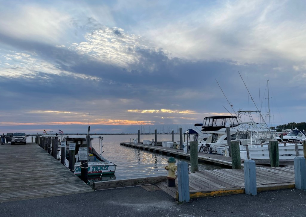 After our ride back we clean up and are taken by van to Waterman’s Crab House in Rock Hall for dinner. We take this photo of the dock there.