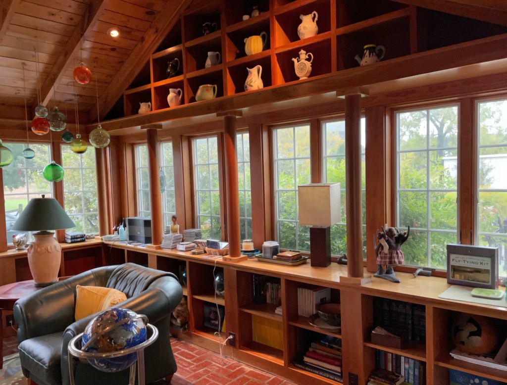 As it turned out, the rain stopped by afternoon so it would have been fine to ride then. But our inn offered lots of interesting spaces to explore such as this library.