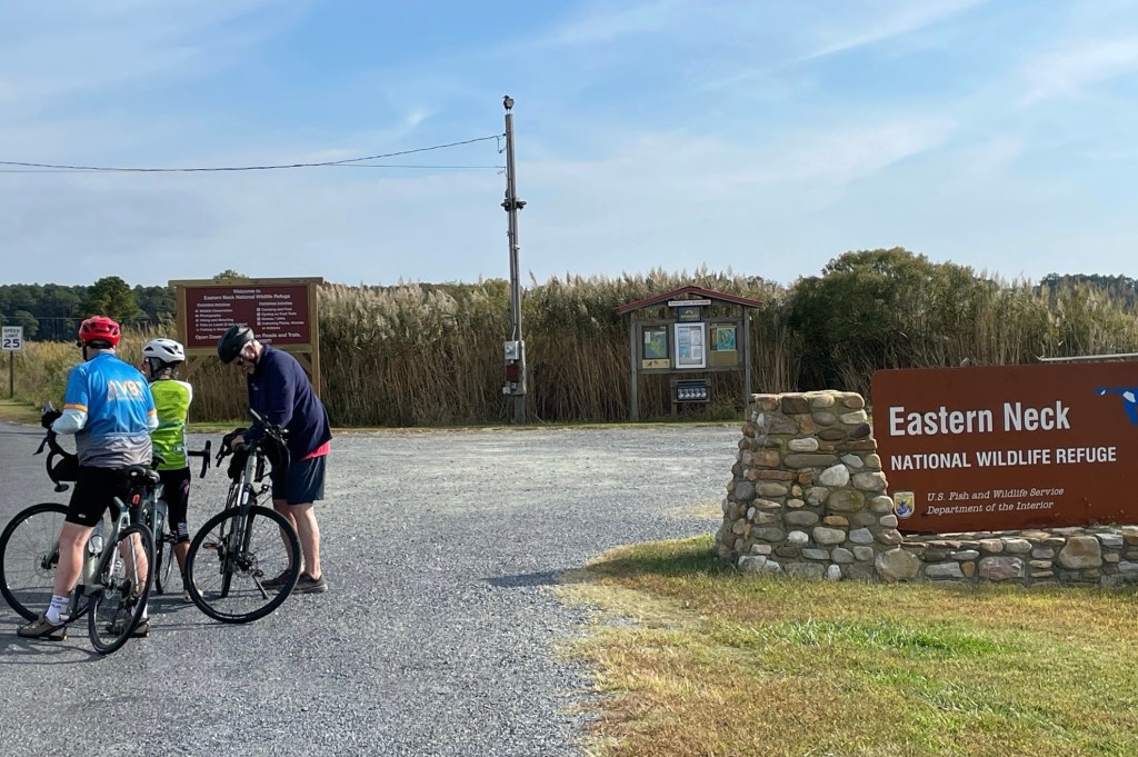We quickly change into bike clothes to complete our late afternoon 12-mile ride to the Eastern Neck Wildlife Refuge. We have a nicely paved road to start on but a fairly stiff wind in our face.