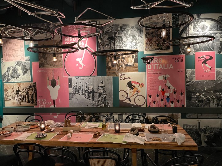 Most interesting here was the wall honoring the Giro d’Italia and interestingly, the 2023 Tour de France started today. British rider Adam Yates won the first stage.