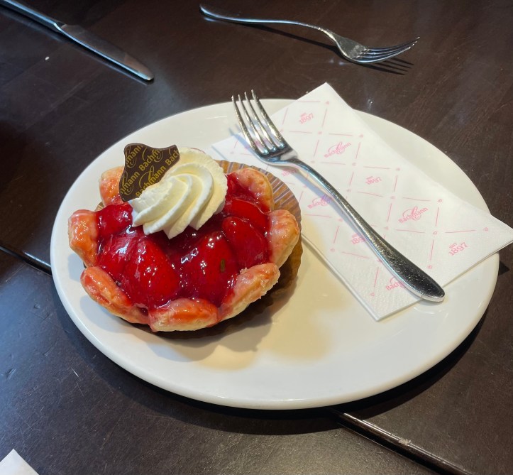 So it was another day of adventures in Lucerne that first included breakfast in a nearby pastry shop where after eggs, eight of us shared this strawberry pastry and a similar raspberry one. We had not succumbed to pastry gluttony yet.