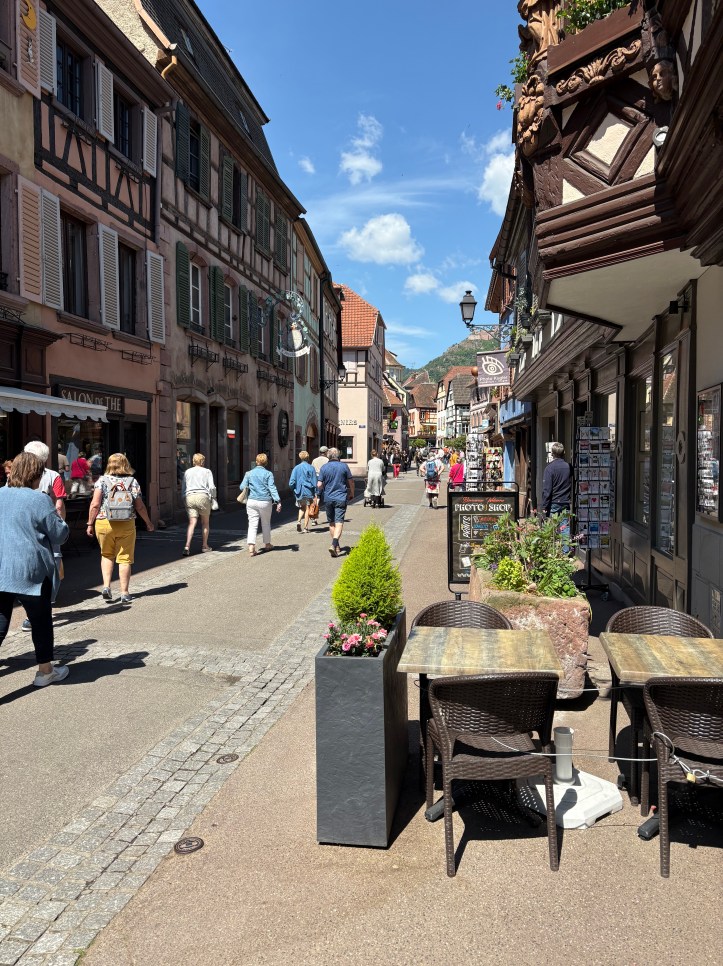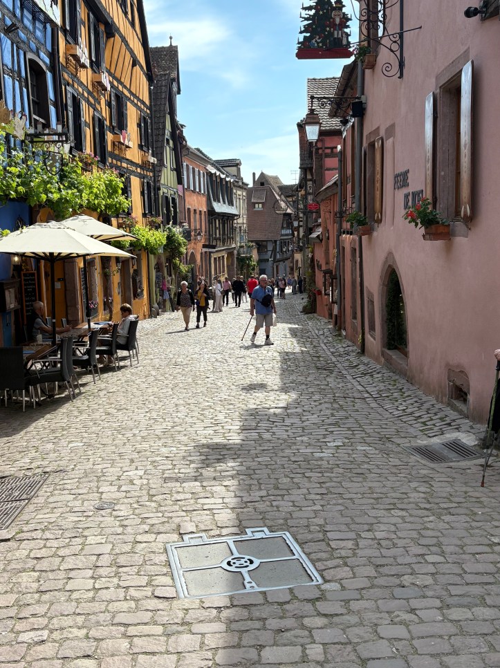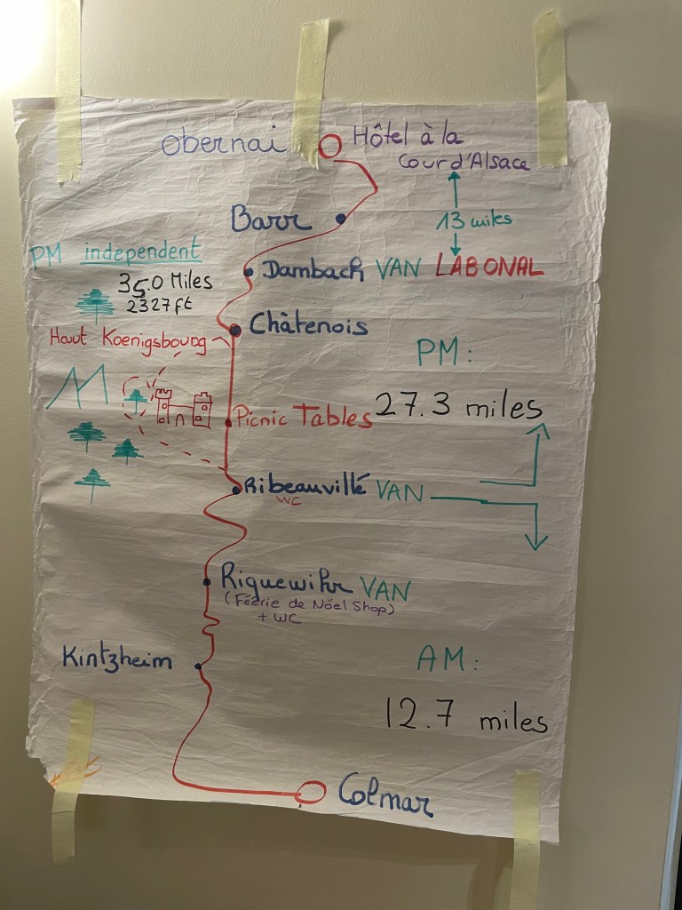 Today’s ride is 40 miles and the most hilly and challenging of the week but also the most scenic. It takes us from Colmar through several small villages and into Obernai for the next two nights. Today’s highlights included a stop at a Christmas store, an outdoor picnic, and scenic villages.