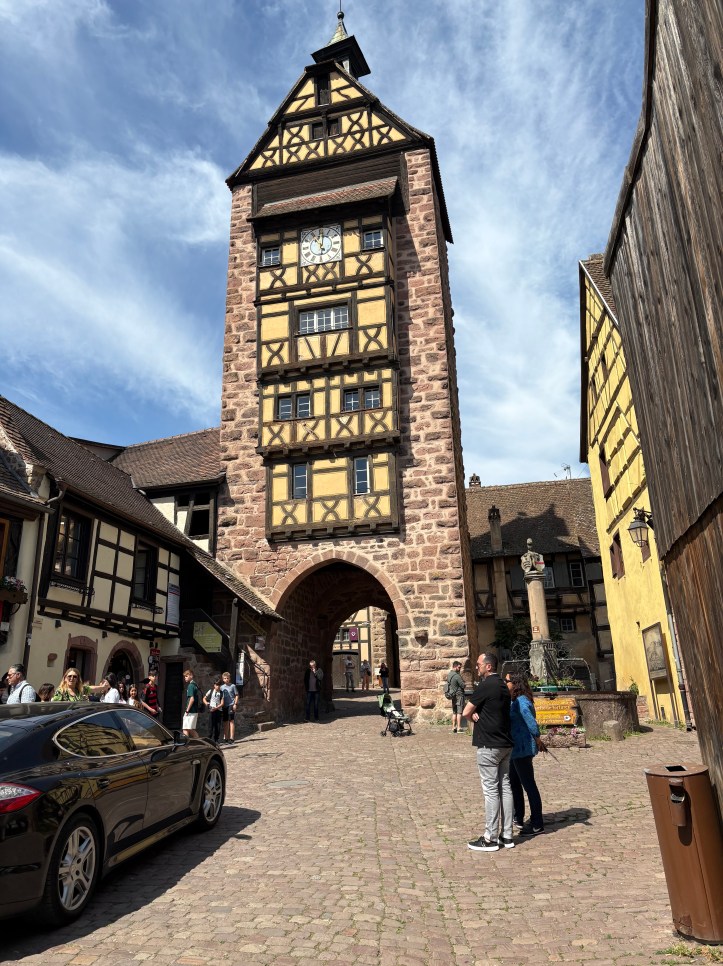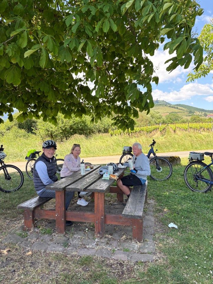 Next stop was in Ribeauvillé. Here, they met the van for snacks, had a restroom stop, and grabbed lunch for a picnic spot further along the road.